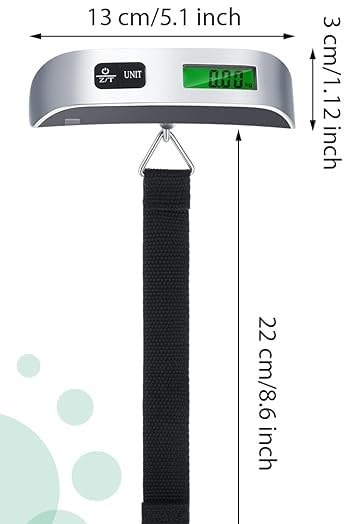 - سعة الوزن العالية: ميزان رقمي محمول يقيس الأوزان بدقة عالية من 0.02 إلى 50 كجم (110 رطل)، مثالي لوزن الحقائب والشنط قبل السفر لتجنب رسوم الوزن الزائد في المطار