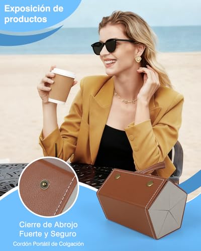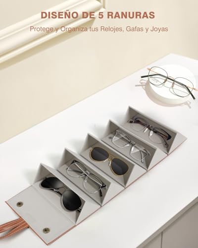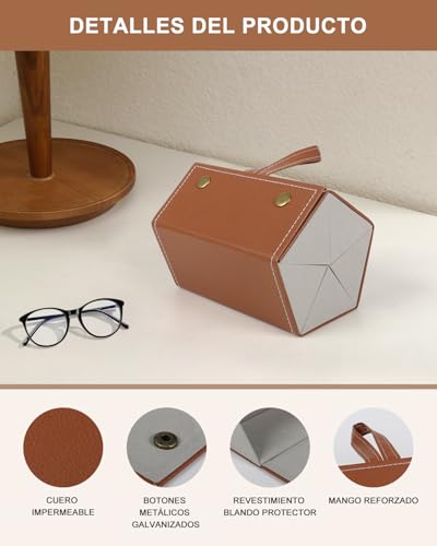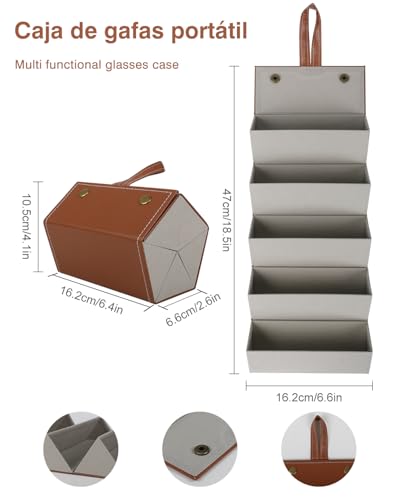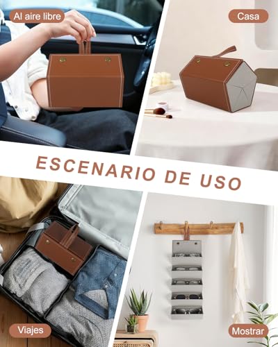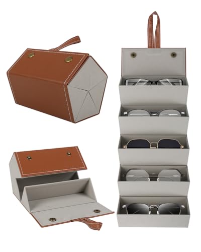 AGTOWM - منظم نظارات محمول قابل للطي مع 5 فتحات - حامل نظارات، حافظة نظارات | للسفر، حماية من الغبار (بني)
