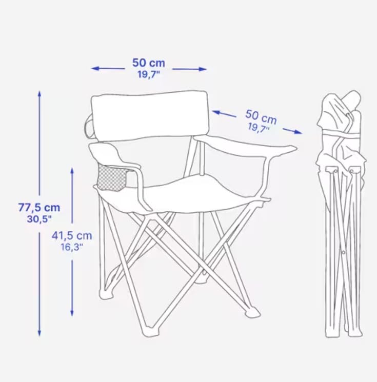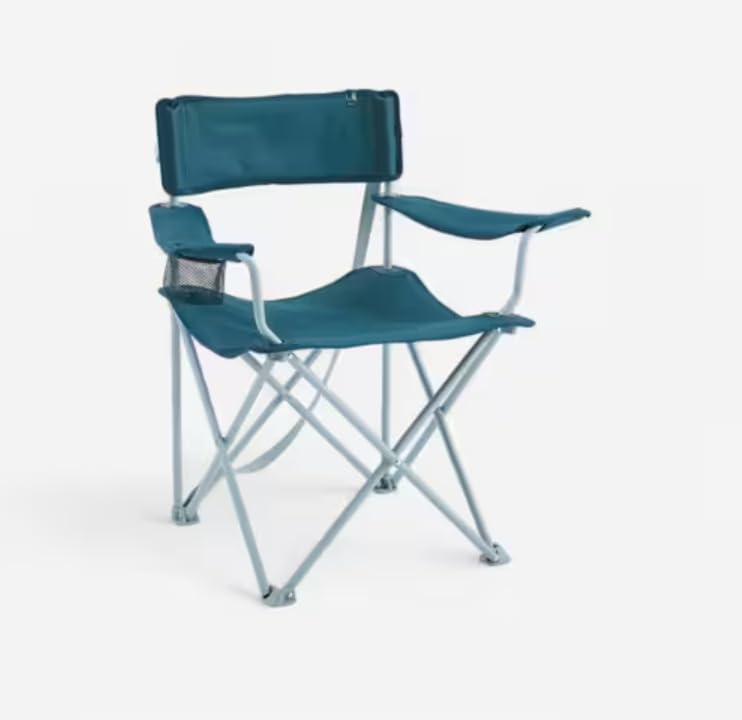 Generic - Portable Folding Camping Chair with Armrests, Teal Canvas, Aluminium Frame, Cup Holder