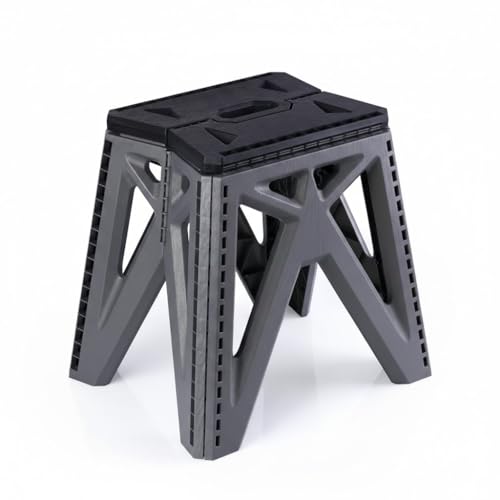 Generic - Portable Folding Chair, Durable Plastic, Grey, 36cm Height, 500kg, with Carry Handle, Anti-Slip, Space Saving