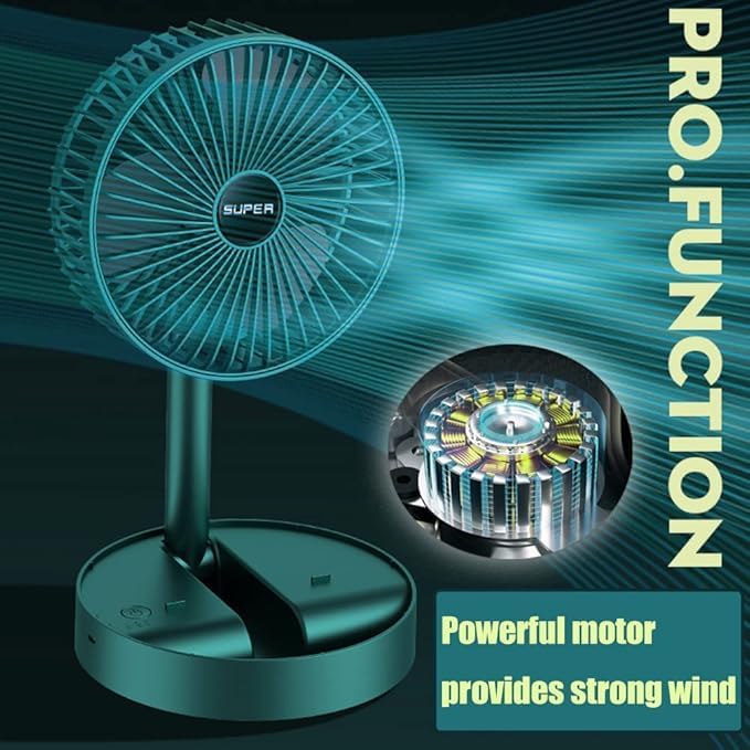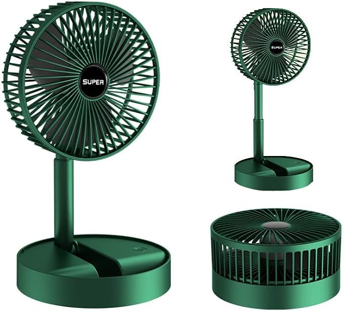 Generic - Portable Folding Fan USB Rechargeable Standing Fan 3 Speeds 3000mAh Battery Operated for Home Camping Outdoor Office 6.5 Inch 4.5W Green