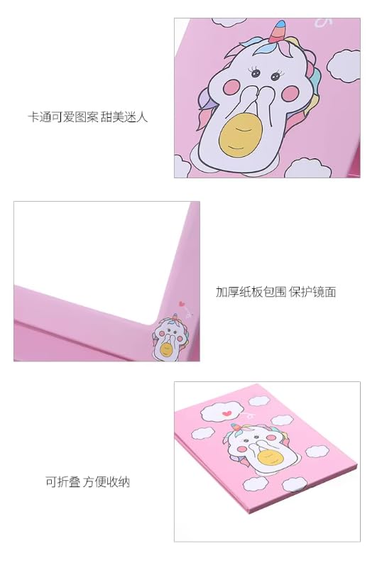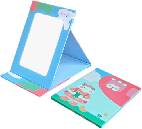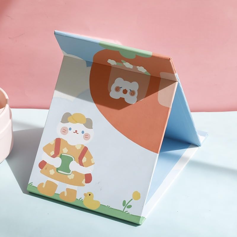 Generic - مرآة مكياج محمولة قابلة للطي بحامل للأطفال والنساء، مرآة زينة بإطار بطباعة كرتونية، مرآة شخصية مناسبة للطاولة والمكتب والتخييم والسفر (متعددة الألوان - مقاس 18 × 14 سم، عبوة من قطعة واحدة)