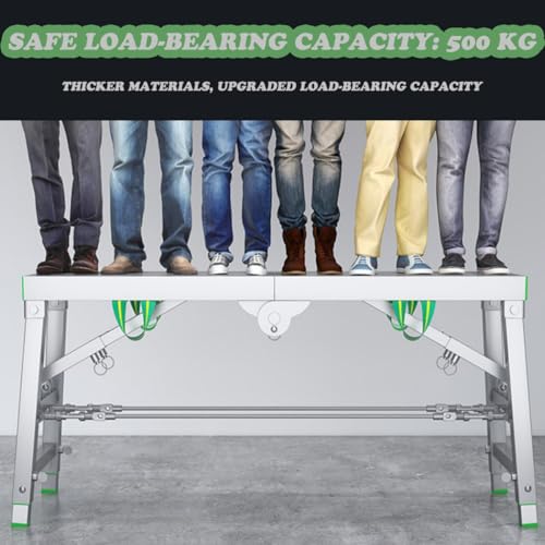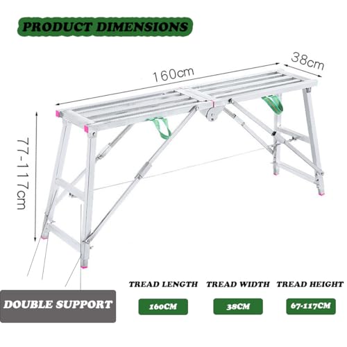 BLSOJEET - Portable Folding Scaffolding,Steel Work Platform,Thickened Support,Adjustable Heightv with Silent Foot Pads with Handle for Working Outside,Decoration,Repair 160 * 40cm