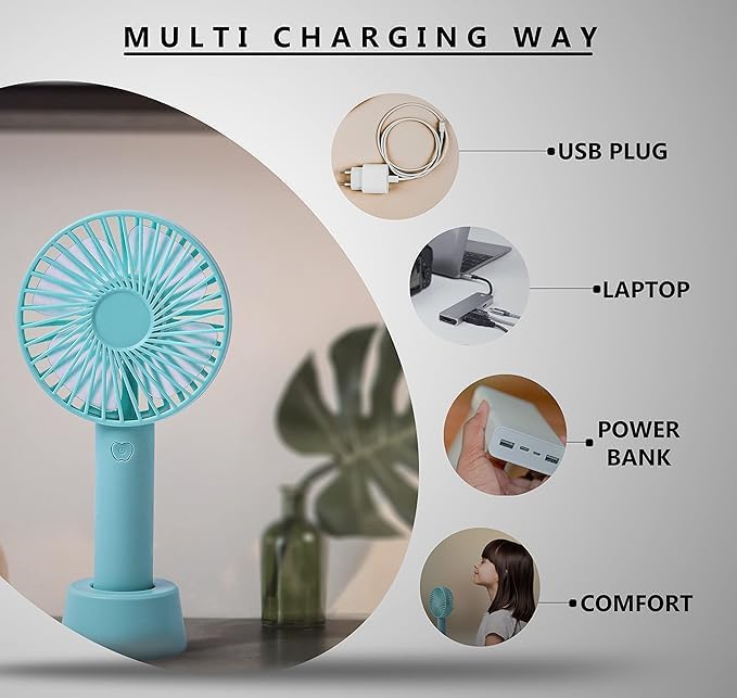 Generic - Portable Hand Fan Mini USB Cooling Table Summer Fan Rechargeable Battery Operated Built-in Vertical Stand Hand Base Indoor Outdoor Multi Color