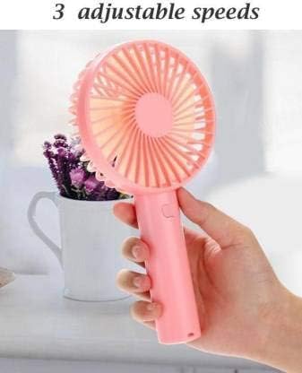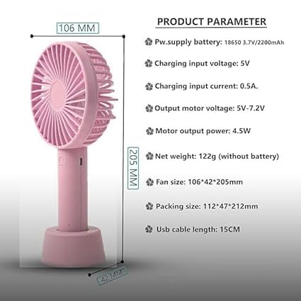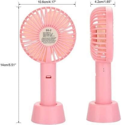 Generic - مروحة يد محمولة، وردي، بطارية ٢٢٠٠ مللي أمبير، قاعدة ثابتة، ٤.٥ واط، مع كابل يو إس بي