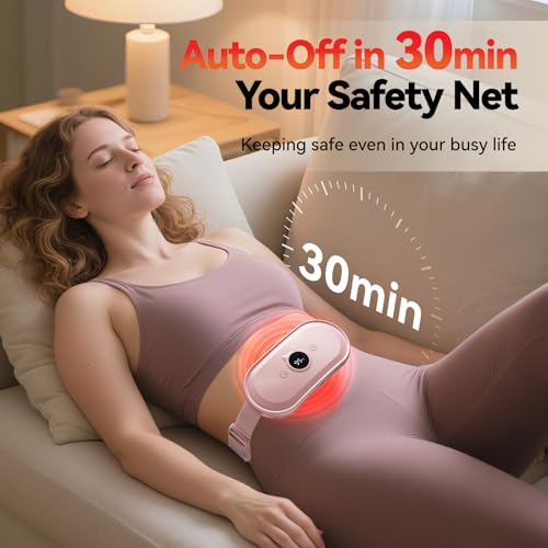 - Safe Design:The heating pad turns off automatically within 30 minutes, safe to use.High elasticity belt can be adjusted in size according to your body shape , Better relief from menstrual cramps and stomach Pain Relief