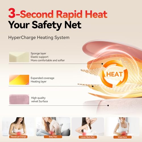 yeklike - Portable Heating Pad for Period Cramps Relief Vibrating Menstrual Heating Belt for Women, Fast Heat with 7 Heat Levels and 7 Modes for Menstrual, Pain Relief for Back & Stomach