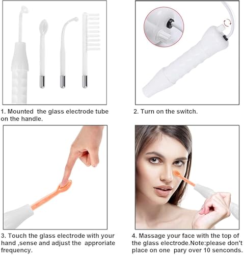 - 4 أنواع من الأنابيب لتلبية احتياجاتك: يتضمن جهاز الوجه عالي التردد أنابيب أقطاب كهربائية مختلفة: أنبوب على شكل فطر، وأنبوب منحني، وأنبوب المشط، وأنبوب اللسان.