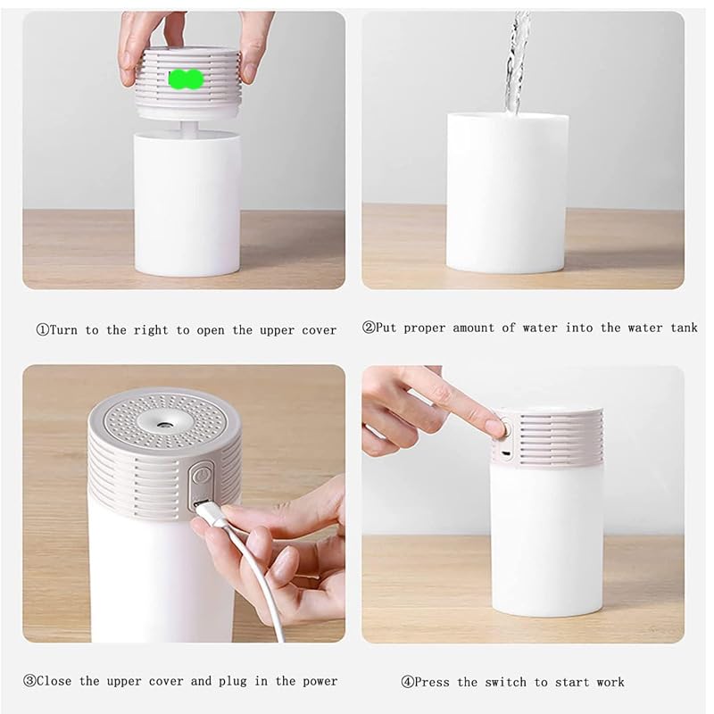 - ✅USB portable air humidifier holster is very easy to operate. One button controls all functions, just press the power button every second to control the mist. Keep pressing the power button for 3 seconds to enable night light and colorful lighting function.