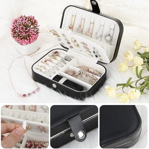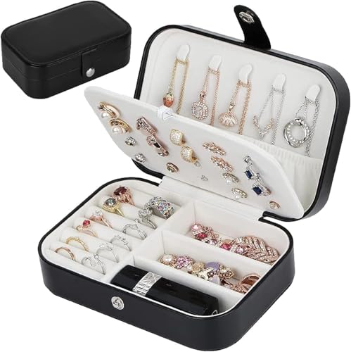 Generic - Portable Jewelry Case Travel Jewelry Box for Earrings, Rings, Necklaces,Bracelets, Watches Organizer Box with Button (Black)