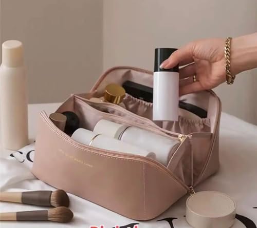 Spaceshoop - شنطة مستحضرات تجميل جلدية محمولة، منظم مكياج بسعة كبيرة مع مقبض (متعددة الألوان)