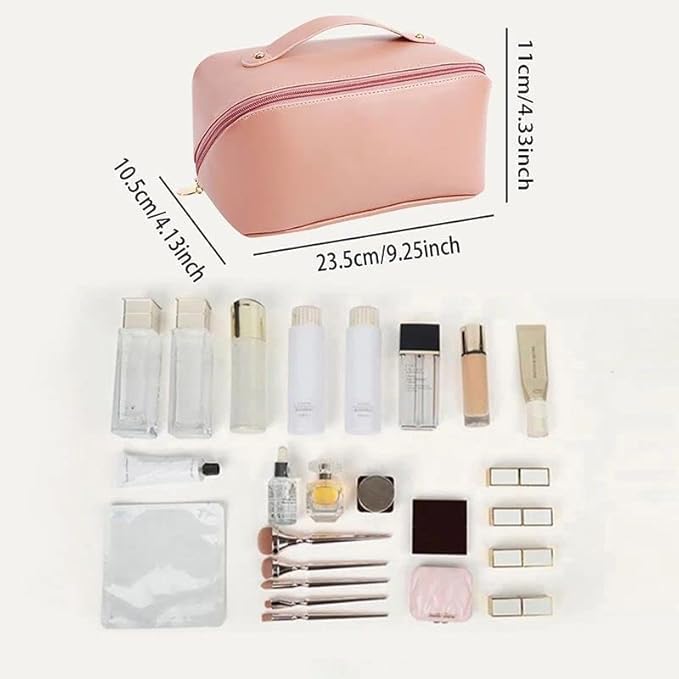 - الأبعاد والتصميم: تصميم صغير الحجم وواسع بلون وردي جميل، مثالي لمستحضرات التجميل أو التخزين أثناء التنقل.