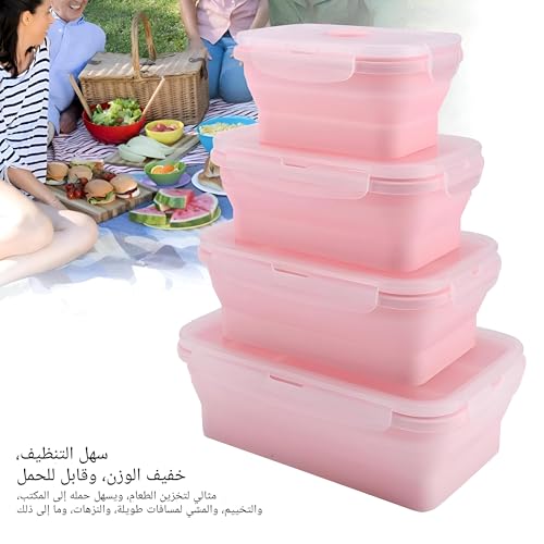 - ملخص المواصفات: المادة: سيليكون آمن للطعام؛ اللون: متعدد؛ نطاق مقاومة الحرارة: -40 إلى 240 درجة مئوية؛ الوزن تقريبًا: 420 جم؛ تم سرد الأحجام عند الطي والأحجام عند الفتح (الأبعاد مذكورة لكل حجم)؛ التغليف يشمل مجموعة واحدة من اللانش بوكس المصنوعة من السيليكون (4 قطع).