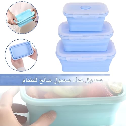 - تتكون هذه المجموعة القابلة للطي من اللانش بوكس المصنوع من سيليكون آمن للطعام، غير سام وخالٍ من الروائح، وآمن للاستخدام في الثلاجات والميكروويف وغسالات الأطباق؛ يمكن طيها بالكامل لتصبح بحجم ثلث حجمها الأصلي، مما يسمح بتكديس الثلاثة أحجام المختلفة معًا، وتشمل المجموعة ذات الأربع قطع سعة 350 ملليلتر و500 ملليلتر و800 ملليلتر و1.2 ل لتناسب الوجبات أو الوجبات الخفيفة أو الفاكهة، مع كونها خفيفة الوزن وسهلة الحمل في المنزل والمكتب والتخييم والمشي لمسافات طويلة والنزهات.