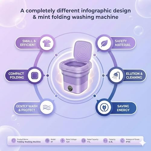 - Foldable Design: Built-in 6.5L Washing Machine, Easy To Store And Transport, Perfect For Small Space, Travel, Camping