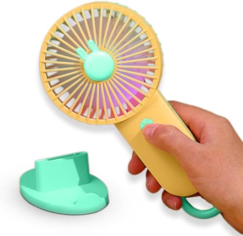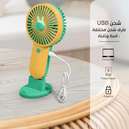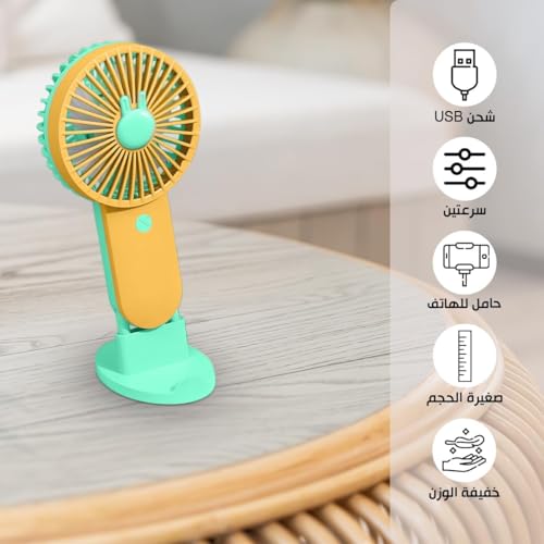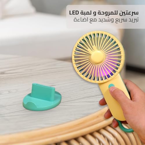 Generic - مروحة يد صغيرة محمولة بمنفذ USB عالية السرعة لسطح المكتب مع حامل جوال وضوء LED سرعتان تصميم صغير للسفر والمنزل