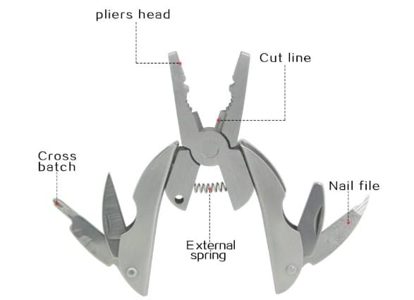 - الوظائف: رأس زردية، زنبرك خارجي، قطعة مفك تقاطع، قطعة مفك مستقيم 3 ملم، مبرد أظافر، وغيرها.