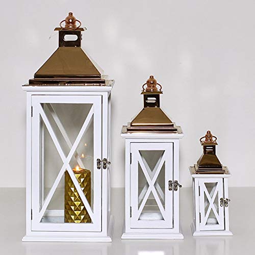 NULL - فانوس رمضان محمول مزخرف، مصابيح بإضاءة ليد مع شمعة ليد للحفلات منزلي الصنع 3 أحجام (صغير، متوسط، كبير) بدون شمعة