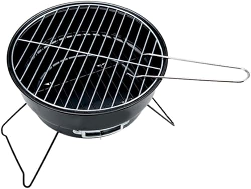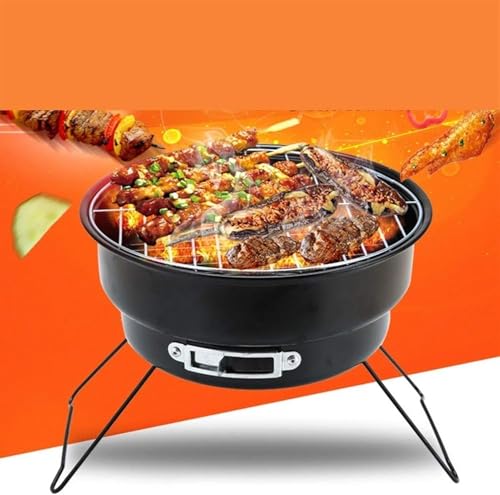 Generic - Portable Round Charcoal BBQ Grill, Black, Foldable Design with Non-Stick Surface, Lightweight Mini Grill for Outdoor Cooking