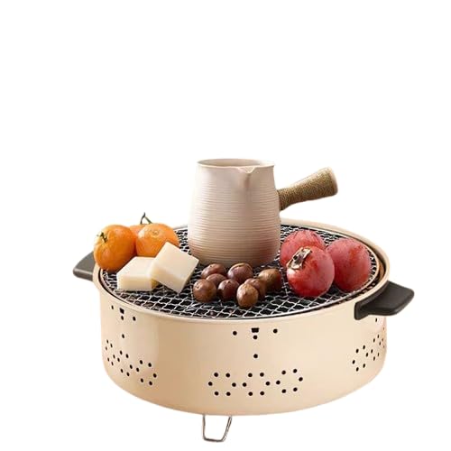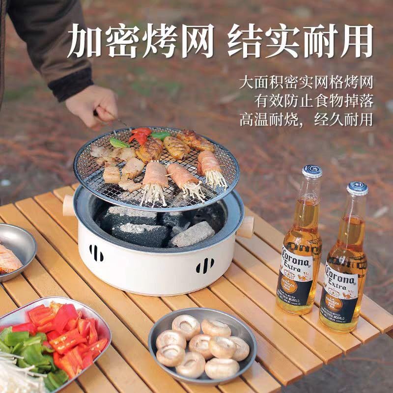 Generic - شواية فحم دائرية محمولة مزودة بشبكة طهي متينة ومقابض يدوية للحدائق والرحلات الخارجية ar
