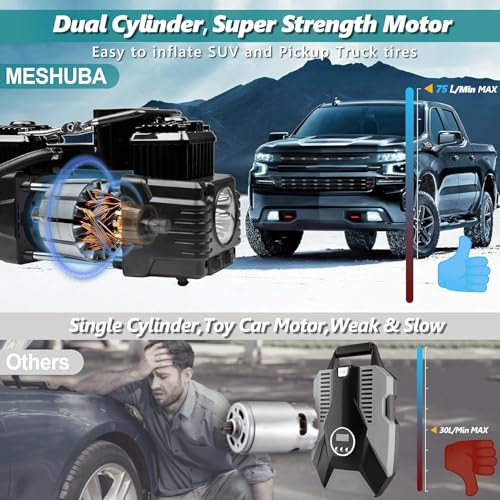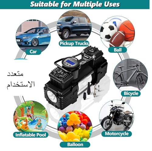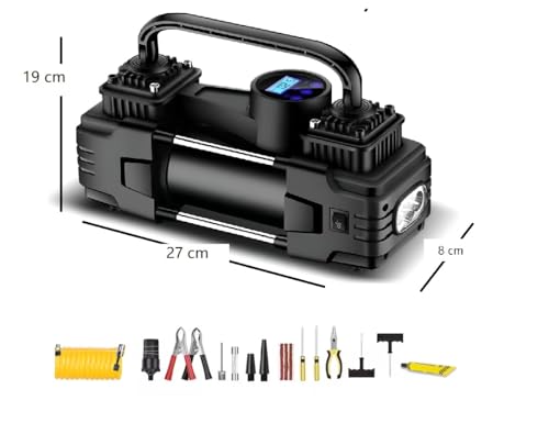 Generic - Portable Tire Inflator Heavy Duty with Dual Cylinder Air Compressor, LED Light, Tool Box, Auto Shut-Off, Digital Gauge, for Cars, Bike Tires and More