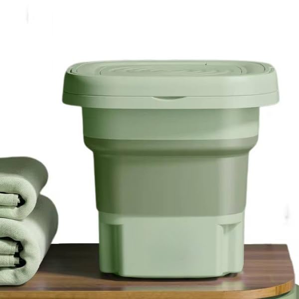 - غسالة ملابس محمولة كهربائية صغيرة الحجم قابلة للطي، مصممة لتكون الحل الأمثل أثناء السفر والرحلات بفضل خفة وزنها وسهولة حملها في أي مكان.
