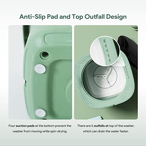 - 【Premium Quality & Fashionable Look】There are 4 suction pads at the bottom to prevent the washer machine from moving while working. With excellent workmanship, our small washing machine takes into account the stylish appearance design and practical functions. If you have any problem with the portable laundry machine, please let us know, we are always here to solve your issue.