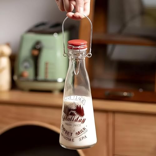 Generic - Portable Water Bottle - Elegant and Durable Glass Bottle for Milk, Juice, or Water, Featuring a Secure Clip Lid and Convenient Carrying Handle for Easy Transport
