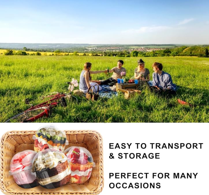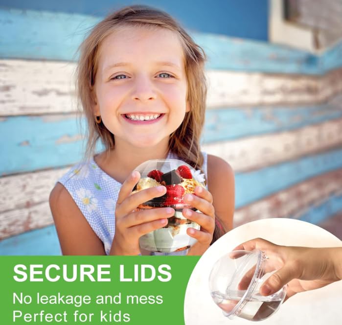 - Disposable cups with lids can be used for all types of food presentations, including desserts, puddings, mousse, sorbet, tiramisu, cocktails, fruits, cakes, ice cream, smoothies, jelly, yogurt, and much more