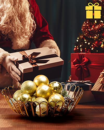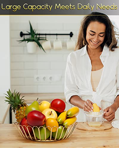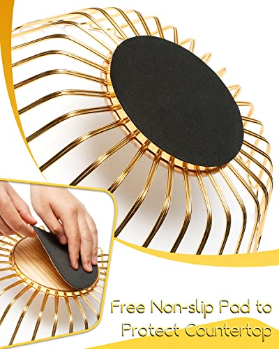 Portal - سلة فواكه معدنية بغطاء خشبي وسلة فاكهة وخضروات لسطح طاولة المطبخ، لون ذهبي