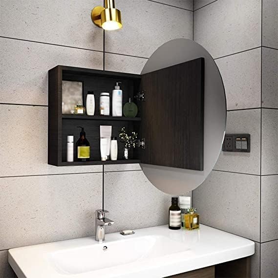 OVA - Portal Mirror Cabinet Round Dressing Room Wall Cabinet Bathroom Wall-mounted Storage Cabinet storage size 40x40 (Black)