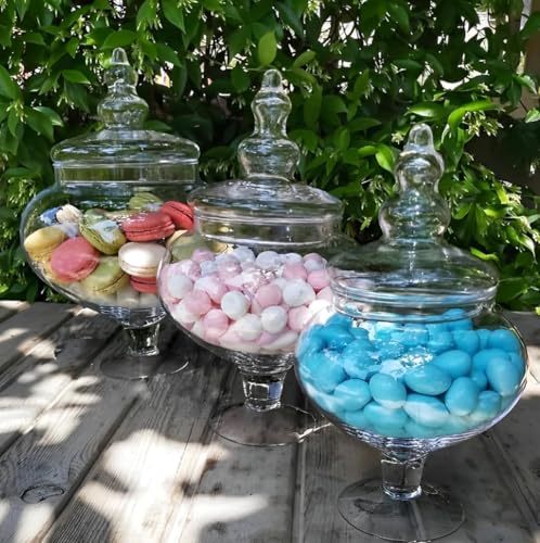 OVA - Portal Storage Jars With Lids,Multipurpose Candy, Cookies and Dried Fruits Organizer,Transparent Jars With Round Handle for Candies, Dried Fruits, Seasonings,Multi-Size,Set of 3 Glass
