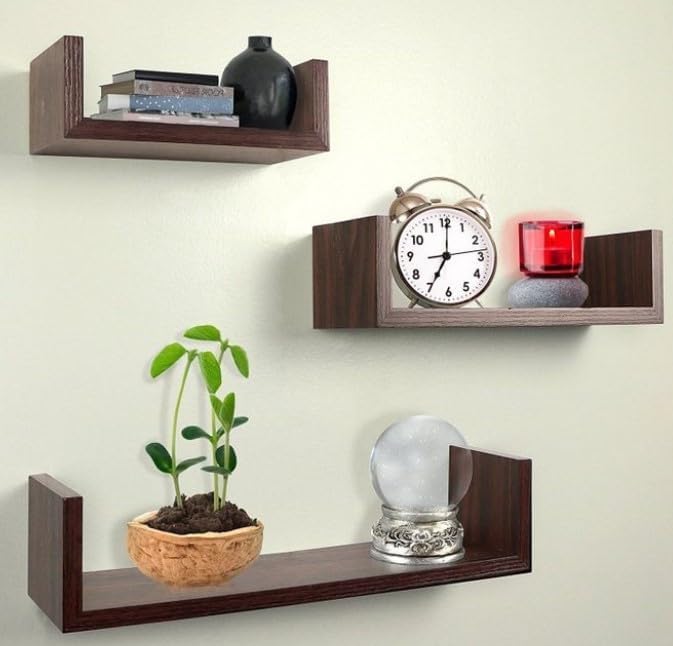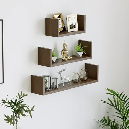 OVA - Portal Wooden Decorative Shelf in the Letter U, Brown – Stylish Wall Storage (Cardboard Box)
