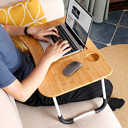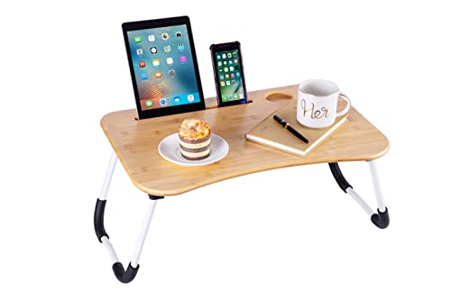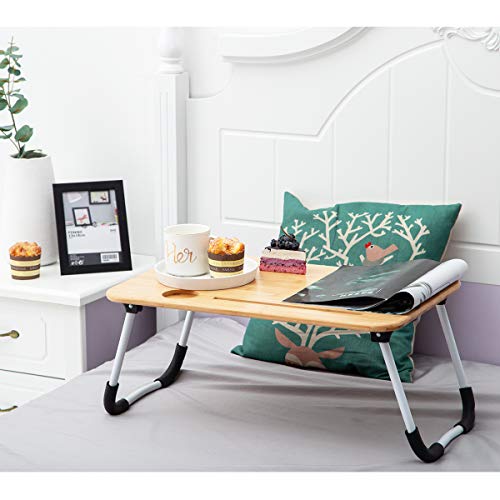 OVA - Portal ZHU CHUANG Multifunctional Laptop Desk Foldable Bed Tray Desk Laptop Stand Table Lap Desk for Eating, Gaming, Working, Drawing, Writing Made with 100% Bamboo Top (White 1)