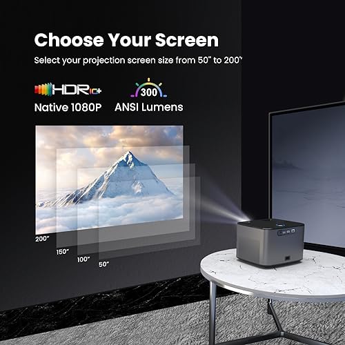 - [صورة كبيرة بالطريقة التي تريدها]: مع حجم شاشة قابل للتعديل، يوفر جهاز العرض بخاصية الواي فاي خيارات للاختيار من بين 5 بوصة إلى 200 بوصة. لذا ستكون أنت المتحكم في حجم العرض حسب مزاجك.