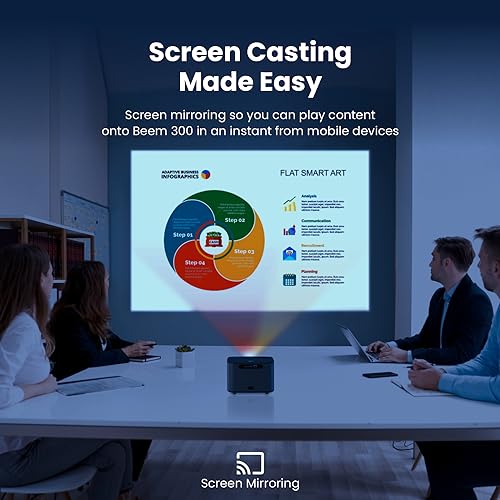 Portronics - جهاز عرض ال اي دي ذكي بيم 300 مع نظام أندرويد، 4300 لومن (300 ANSI)، دقة FHD 1080P، حتى 200 بوصة، تطبيقات او تي تي، خاصية واي فاي/ايثرنت، انعكاس الشاشة، مكبر صوت 10 وات من بورترونيكس بيم (أسود)