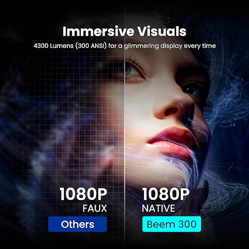 - [لتجربة مسرح منزلي مبهرة]: يعمل جهاز العرض المنزلي بيم 300 واي فاي من بورترونيكس على تحويل مشاهدتك إلى مستوى آخر باستخدام إضاءة ليد 250 لومن لعرض ساطع. دقة أصلية FHD 1920×1080 لصورة أوضح إلى جانب 20000:1 للحصول على تباين حاد. ملاءمة حقيقية لتجربة المشاهدة واللعب.