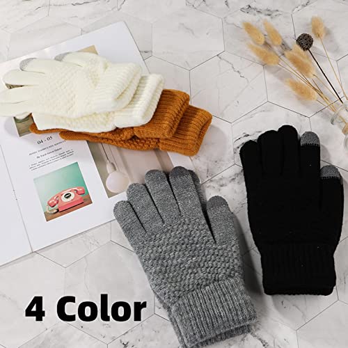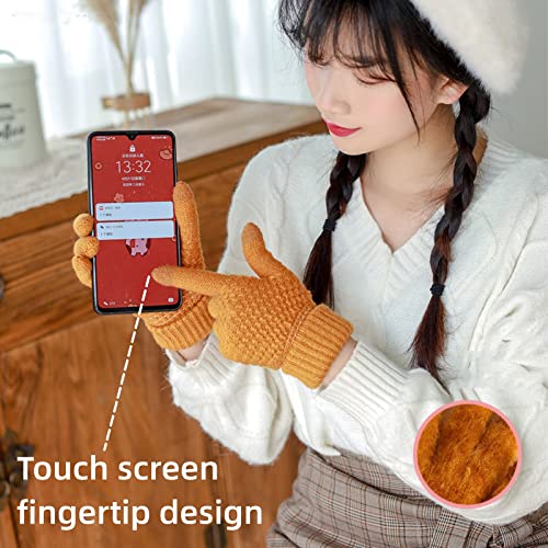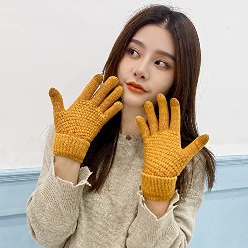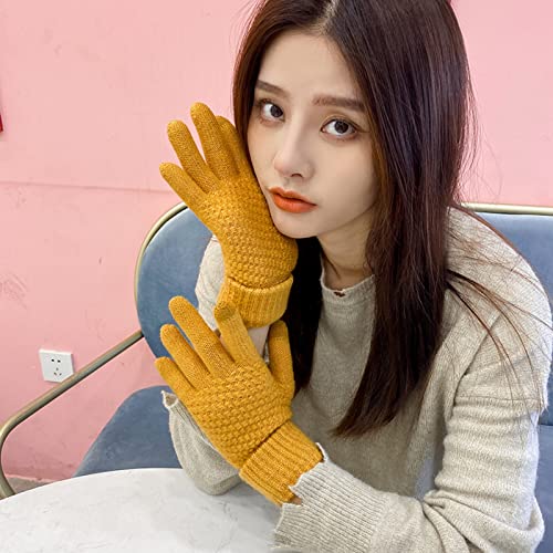 POSICHE - Winter Gloves Touchscreen Gloves Jacquard Solid Color Weaving Autumn & Winter Solid Color Knitted Gloves Warm and Thick Male & Female Students Driving Gloves Elastic Cuff, yellow, One Size