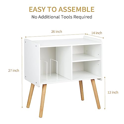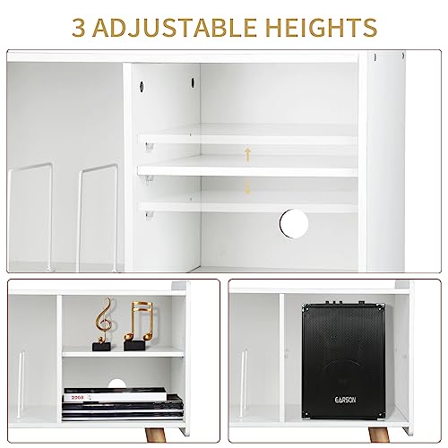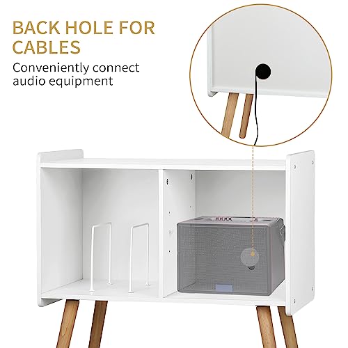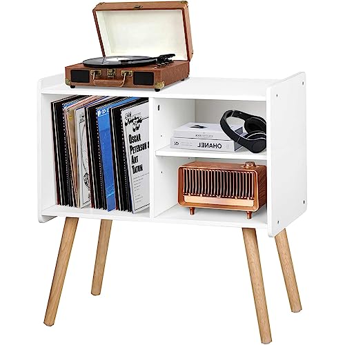 Possile - Mid-Century Record Player Stand, Vinyl Record Cabinet Holder with Storage Up to 100 Albums, Record Player Table for Living Room Bedroom Office, Turntable Stand with Wood Legs, White