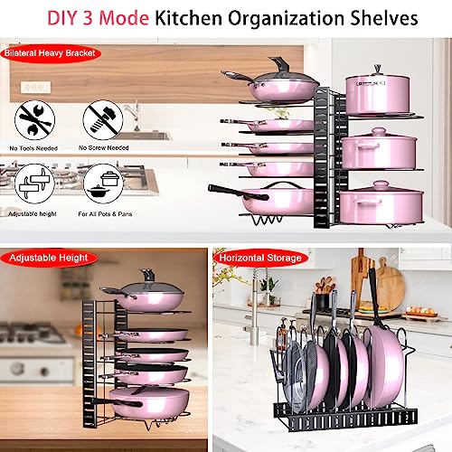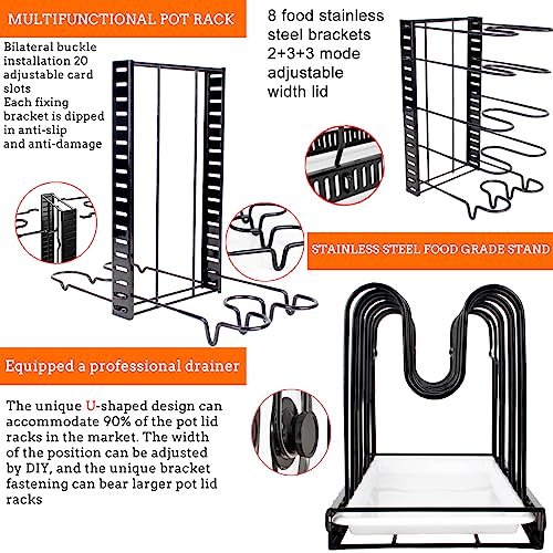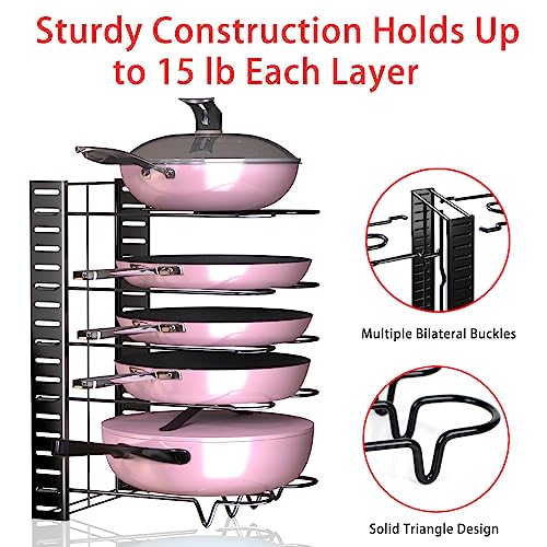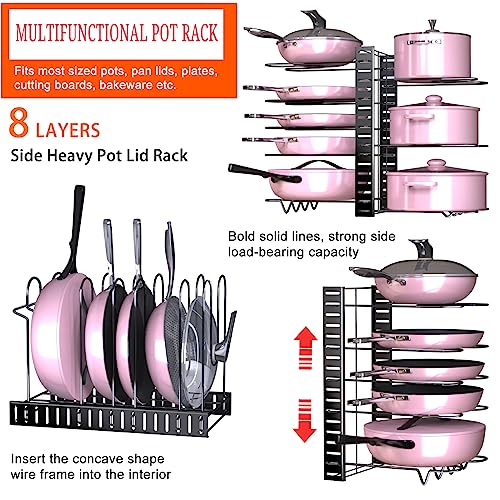 HAOWUJIN - منظم الحلل والمقالي للخزائن، مع 8 طبقات قابلة للتعديل لتنظيم القدور والمقالي داخل الخزانة و3 طرق تركيب ذاتي لحامل تنظيم المقالي ومنظم لأغطية القدور ومنظم لما تحت الخزانة لتخزين ورف الحلل.