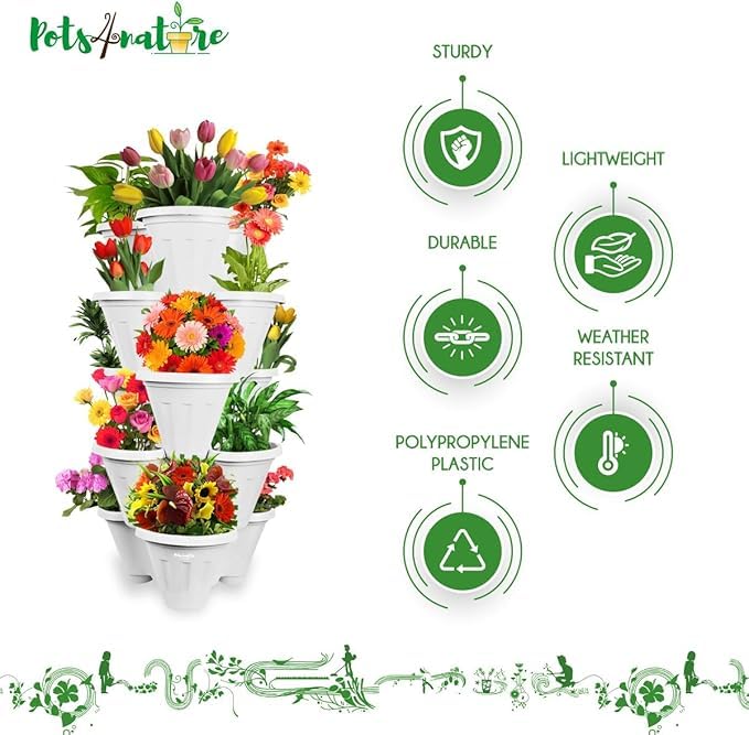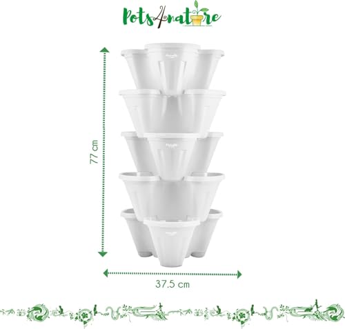 Generic - Potts for Nature 5 Tier Vertical Planter for Flowers, Vegetables, Strawberries, Herbs, Indoor Outdoor, Balcony, Backyard, Gardening Tower - White 37cm, Plastic