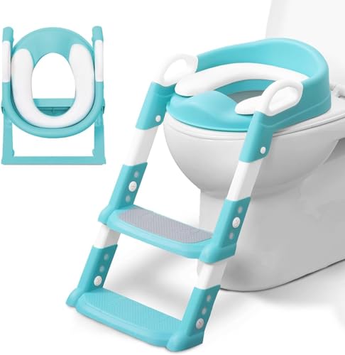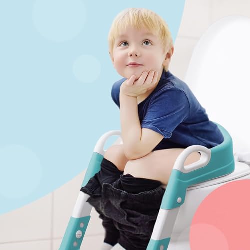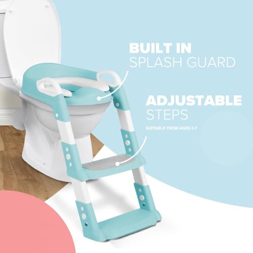 - ADJUSTABLE DESIGN: Toilet training seat with adjustable ladder fits most toilet sizes and adjusts to grow with baby