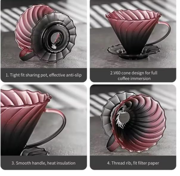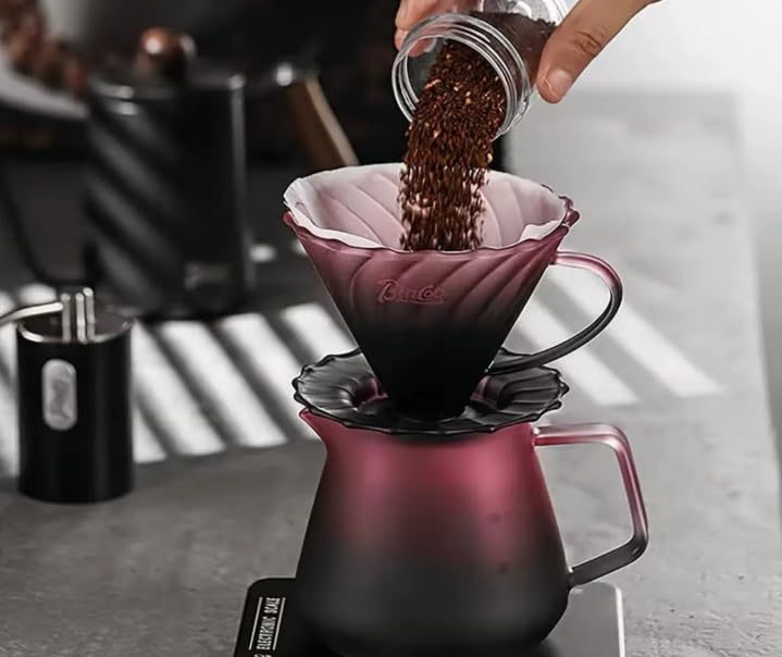 - تصميم فاخر: تتميز مجموعة ماكينة تحضير القهوة القابلة للصب على طراز V60 بمخروط فلتر حلزوني مضلع وإبريق زجاجي مقاوم للحرارة بسعة 500 مل من أجل تخمير يدوي دقيق