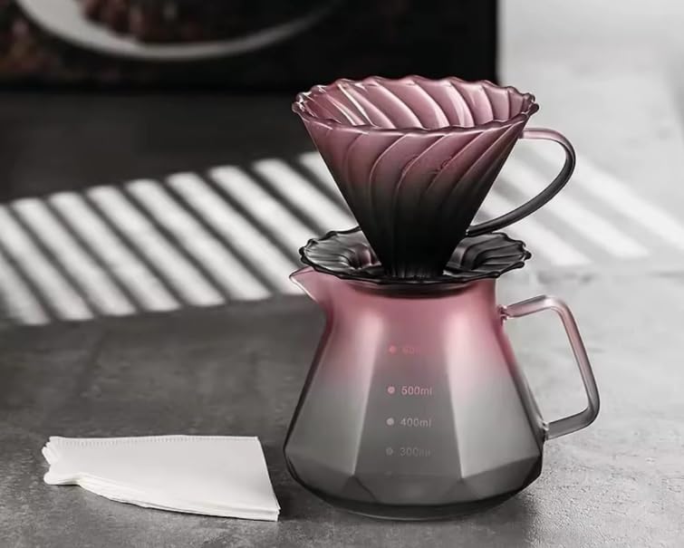 Generic - مجموعة ماكينة تحضير القهوة بالصب مع إبريق زجاجي، قمع التنقيط على طراز V60، سعة 500 مل، مخروط فلتر حلزوني مضلع، مقبض مقاوم للحرارة، مجموعة تحضير يدوية