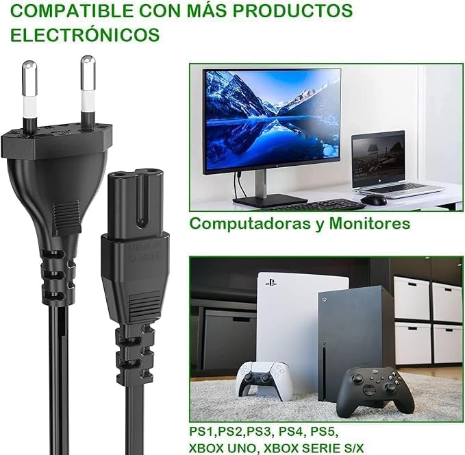 - 2.5 Amp 250V Black Power Cord Cable Compatible with Laptop, Radio, Cassette Adapter, TV, PS, Power Supply Adapter, and Many More (Black)