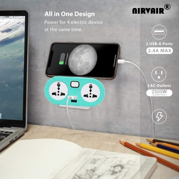 - شحن أكثر وقلق أقل: اشحن 4 أجهزة في نفس الوقت مع منفذي تيار متردد ومنفذي USB. سواء كان موبايلك أو اللاب توب أو المروحة، اشحن كل أجهزتك من مقبس واحد صغير.