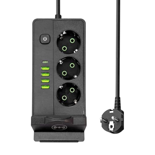 Generic - مشترك كهربائي 1080 بـ 3 منافذ و5 منافذ USB عمودية مع لوحة شحن لاسلكي 2500 وات 220 فولت 250 فولت، قاعدة شحن بمفتاح للفصل للمكتب والمنزل