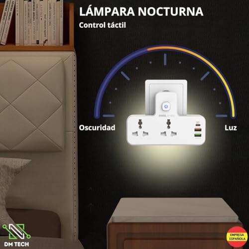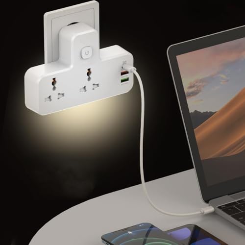 Generic - محول مقبس كهربائي مزدوج مع تحكم باللمس وإضاءة ليلية، مزود بمنفذ PD بقوة 20 وات، ومنفذ QC3.0 بقوة 18 وات، ومنفذ تعريف تلقائي بقوة 12 وات - لون أبيض