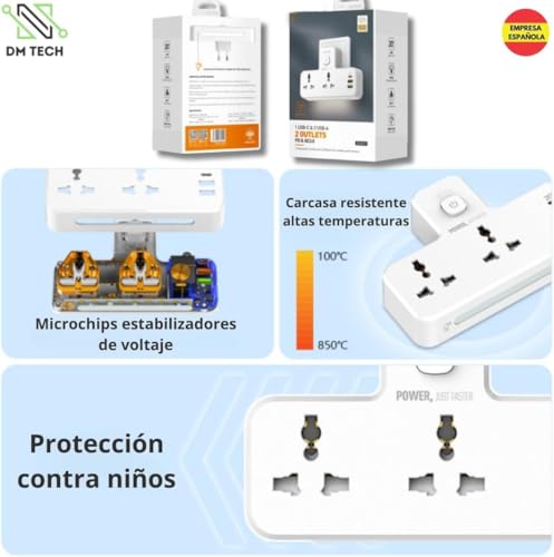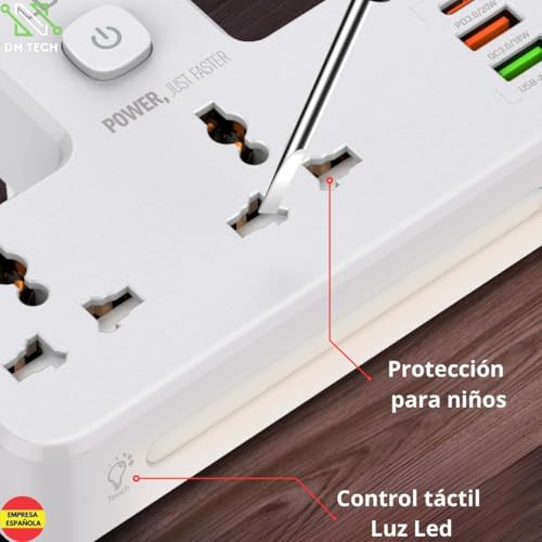 • 5 في 1 - صُممت لوحة التمديد هذه بمقبسين دوليين (بحد أقصى حمولة 10 أمبير)، ومفتاح تشغيل رئيسي، وكابل بطول مترين، بالإضافة إلى شاحن يدعم تقنية الشحن السريع USB PD+QC 3.0، مما يسمح لك بتشغيل 3 أجهزة في وقت واحد، وهي مناسبة لمعظم الموبايلات وأجهزة التابلت وأجهزة الكمبيوتر وغيرها من الأجهزة المنزلية.
