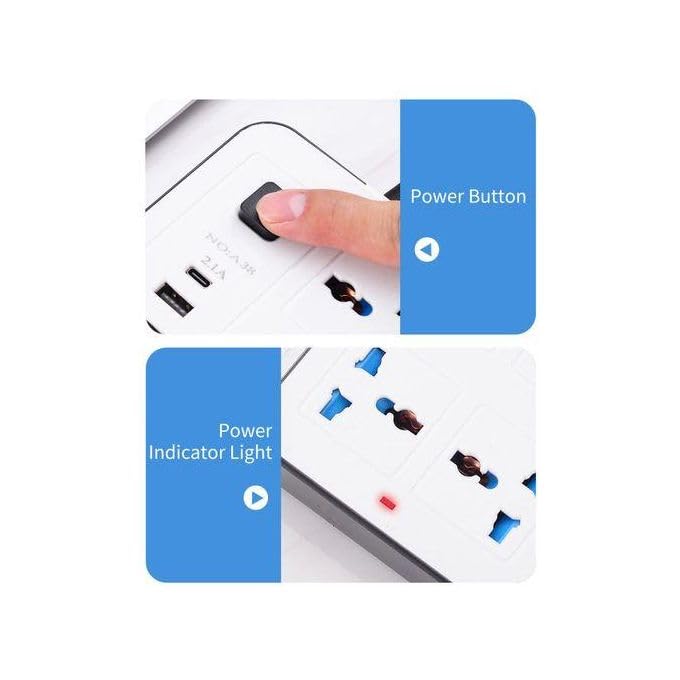 Generic - Power Extension Socket, Power Strip with USB, 3 USB Ports & 1 Type C | Independent Power Switch, Max 1A, Overload Protection & Child Safety, 2 Meter Extension Cord, Model:634